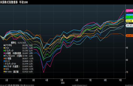ラッセル2000は8月の安値から15%程度上昇。リスクマネーが暴れているようです。