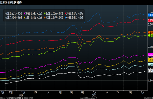 2年国債金利が0.9%、5年が1.20%、10年は1.64%です。日銀のETF売却発表で、金融政策正常化が一歩進んだ為、10年国債金利は2.5%程度まで上がることとなりそうです。足元金利は1%、10年はまず2%を目指しそうです。