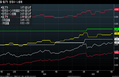 この金利上昇で、住宅ローン金利は上昇します。変動の方、要注意。イールドカーブが立ってくるとフォワードレートが上昇します。