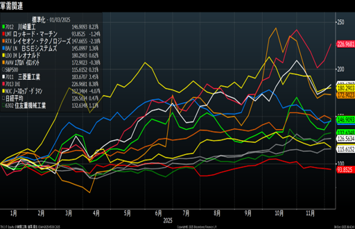 バリューの他では軍需関連が注目されそう。既に割高な水準ですが来年もテーマとなりそう。