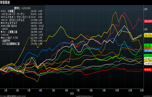 来年は私のポートでカバーできていない軍需関連やエンタメ関連の割安感がある銘柄など3銘柄に絞ろうと考えております。三菱重工が良いと思いますが高すぎ。IHIか川重かなあ。