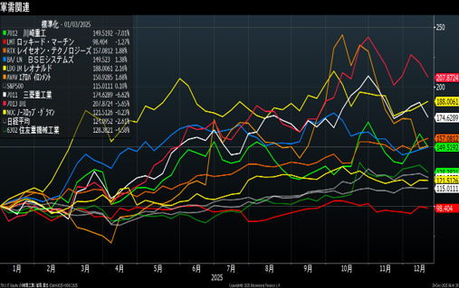 米国に株式市場では軍需が確りする中、AI関連銘柄は割高の修正が入っているようです。