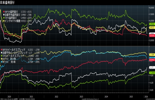 また、日本株のイールド・スプレッドはマイナス3.2%と、債券よりも株式が割安な状況です。