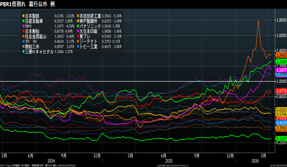 TOPIX構成銘柄でPBR1割れ銘柄数は先週の574銘柄から558銘柄に減少。